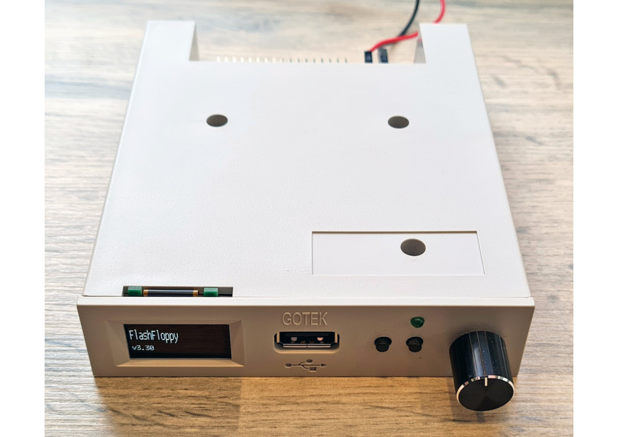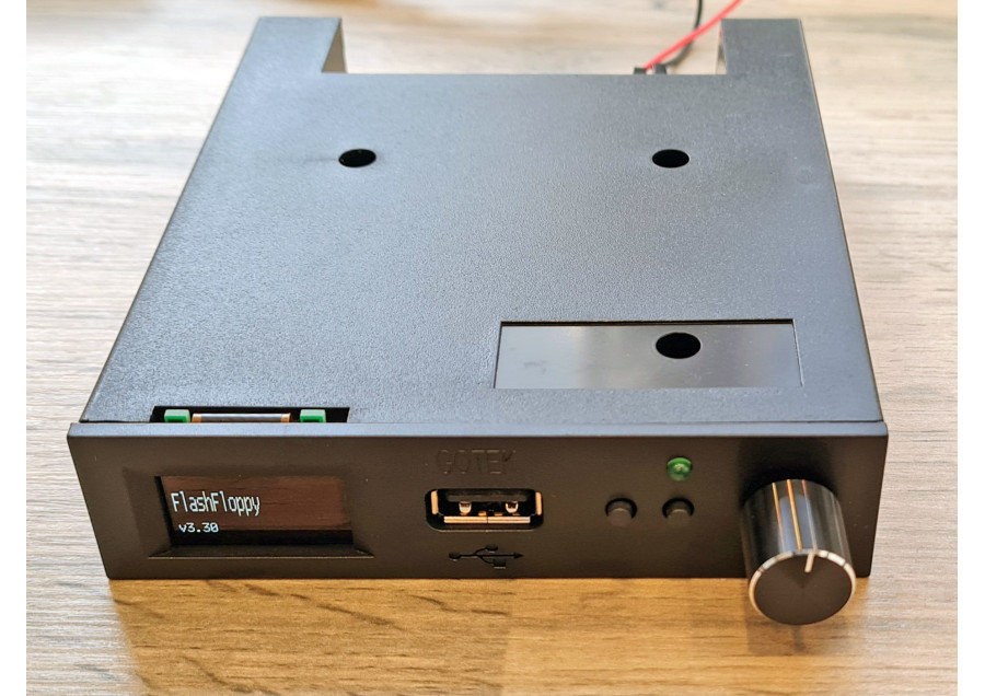 External Gotek USB Floppy Disk Emulator Drive in metal enclosure with large OLED display and Rotary ..