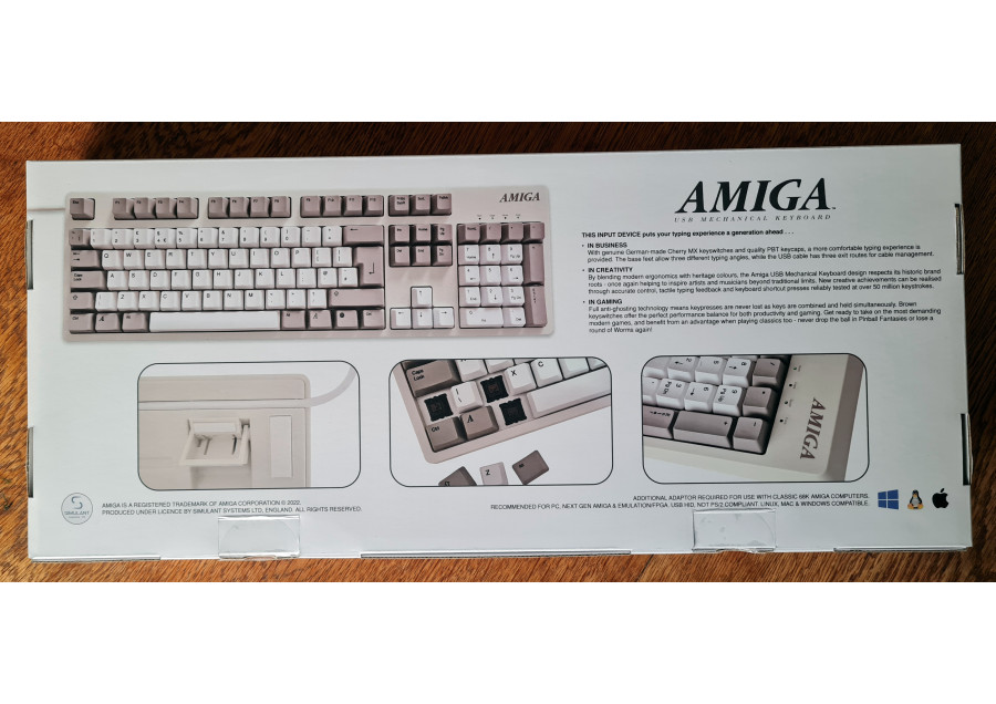 The Amiga "Classic" USB mechanical PC keyboard is a brand new officially licensed Amiga product manufactured by Simulant Systems Ltd. The keyboard is built to last, with a sturdy construction and quality components. Enjoy the ultimate typing experience with genuine Brown Cherry MX key switches.
