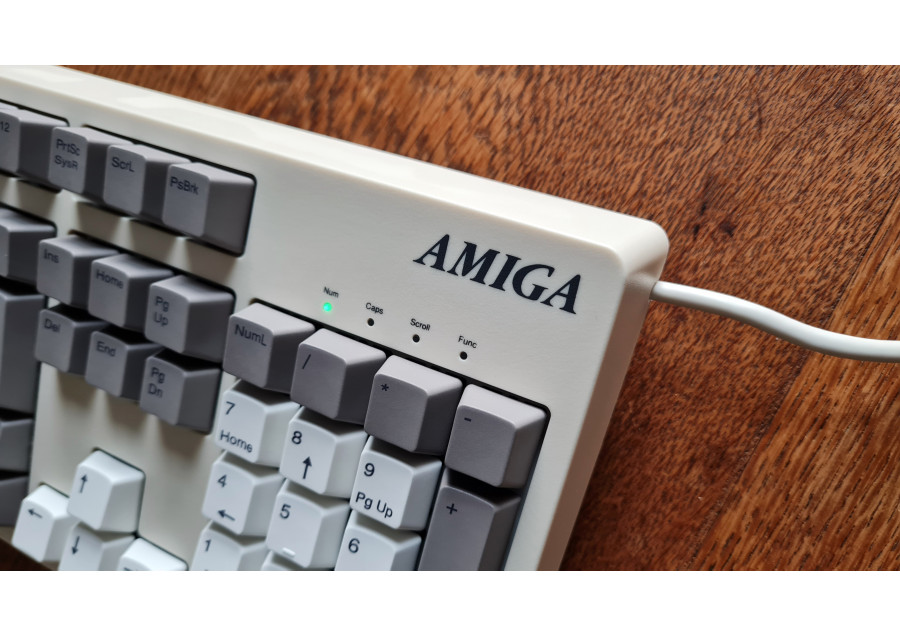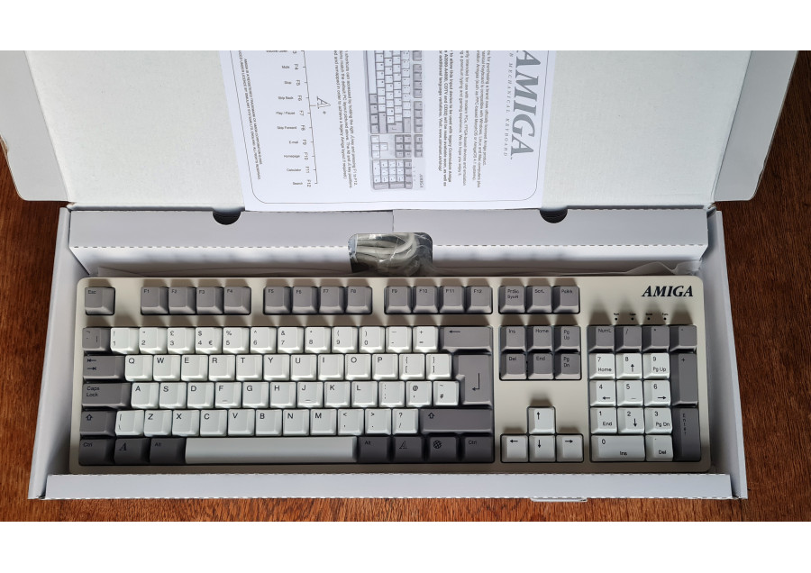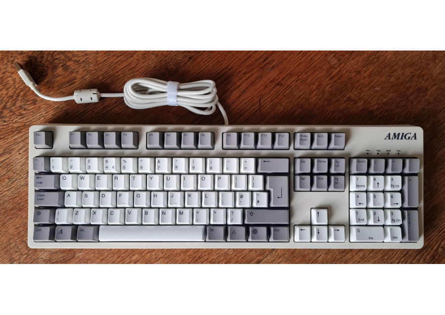 - 105 Amiga-style custom PBT keycaps in traditional ISO layout.
